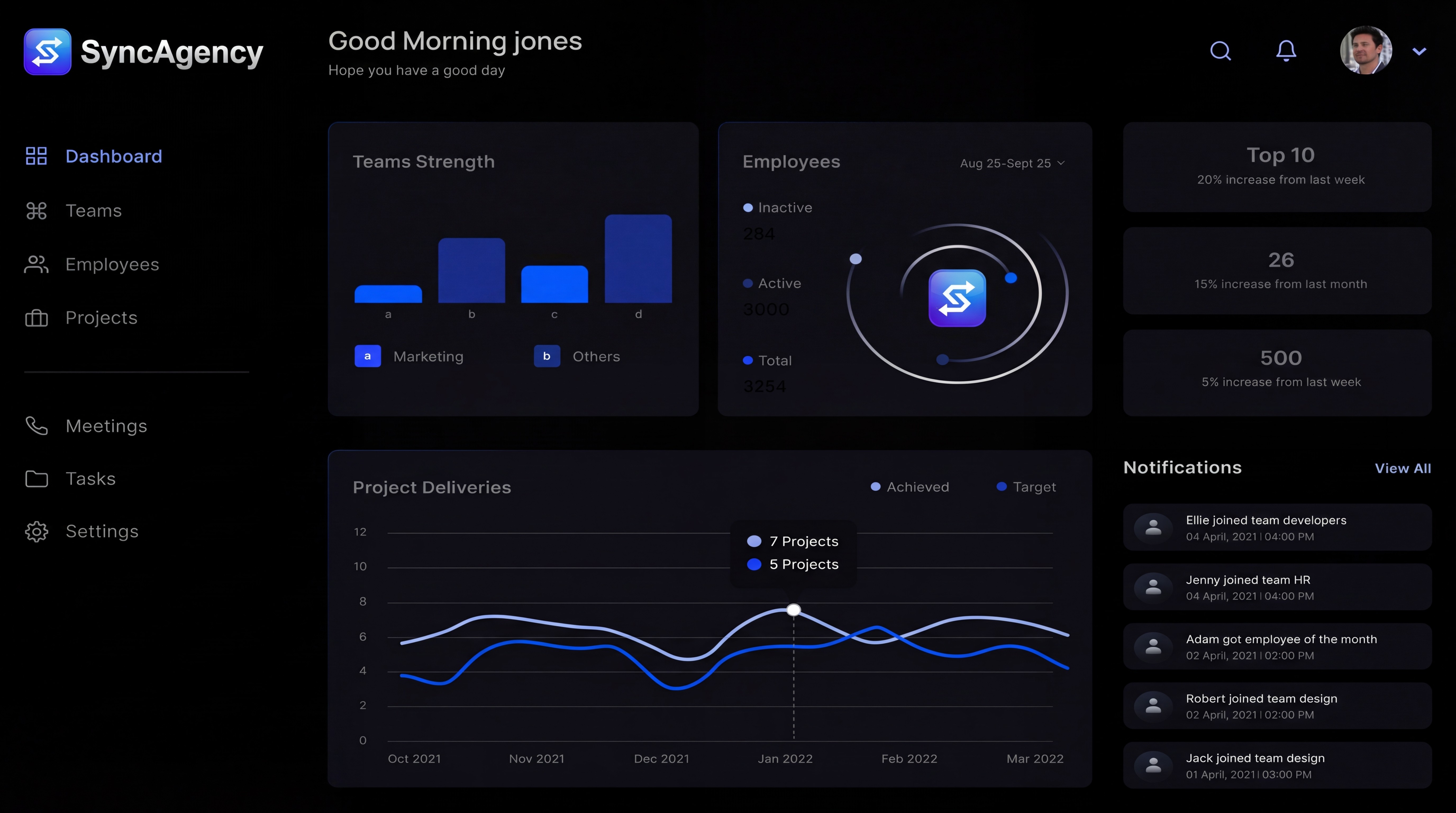 Quand l’équipe grandit, les outils dispersés créent des fuites. SyncAgency standardise l’exécution et rend la performance visible.